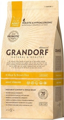 Grandorf (Грандорф) Live Probiotics 4 Meat Recipe Sterilized Беззерновой гипоаллергенный корм 4 вида мяса для стерилизованных котов и кошек с пробиотиками