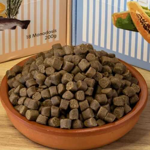 В состав входит: 53% свежий лосось, 32% свежая индейка, частично гидролизованный крахмал, батат 4%, растительный глицерин и прочее; без злаков