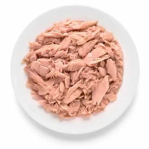 До складу входить: філе тунця 75%, бульйон з тунця 24%, картопля 1% (дрібно нарізані шматочки в бульйоні у консервній банці)