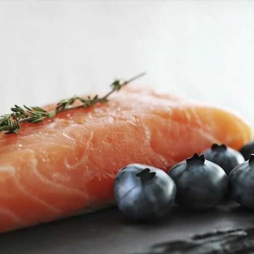 До складу входить: 52% свіжий лосось, 30% свіжа курка, частково гідролізований крохмаль, чорниця 4%, рослинний гліцерин тощо; без злаків